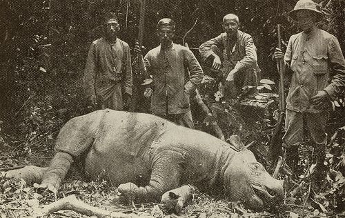 An undated picture of a Javan rhino hunted by a shooting party, believed to be somewhere in Peninsular Malaysia.