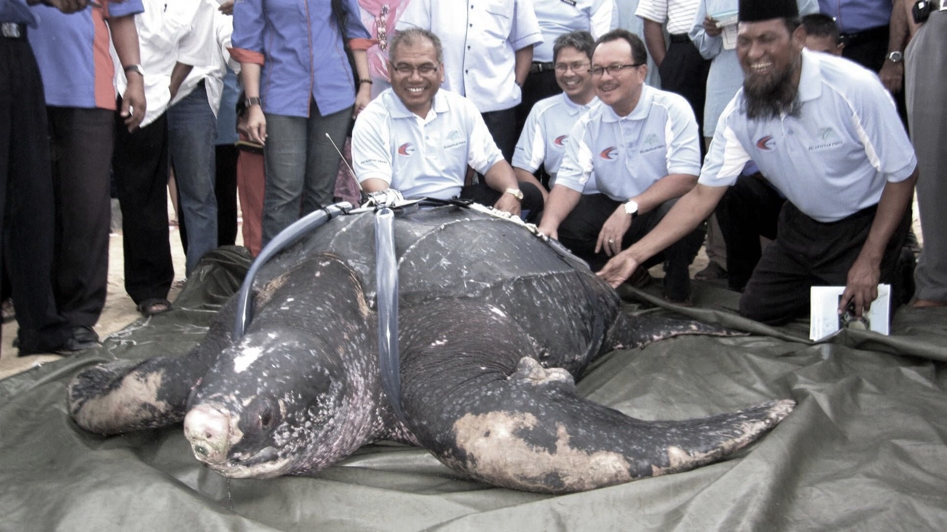 In this August 2010 photo, a 32-year-old female leatherback is about to be released from the Rantau Abang Turtle Sanctuary in Terengganu after a two-day quarantine. The turtles are no longer returning to Malaysian shores to lay their eggs so they are effectively extinct in Malaysia.